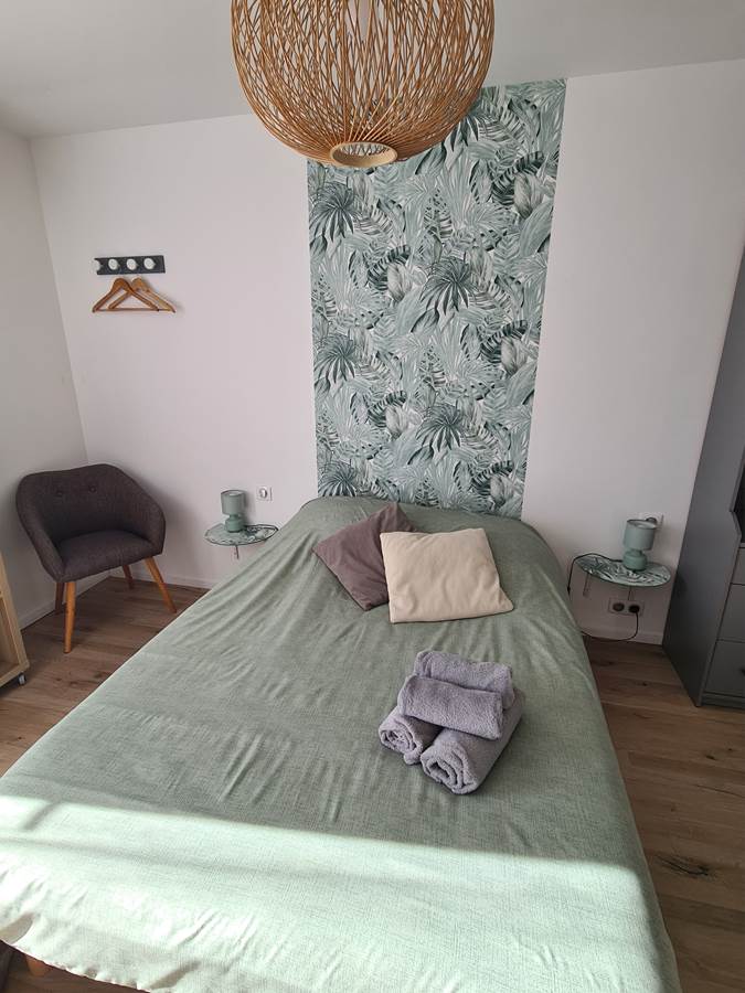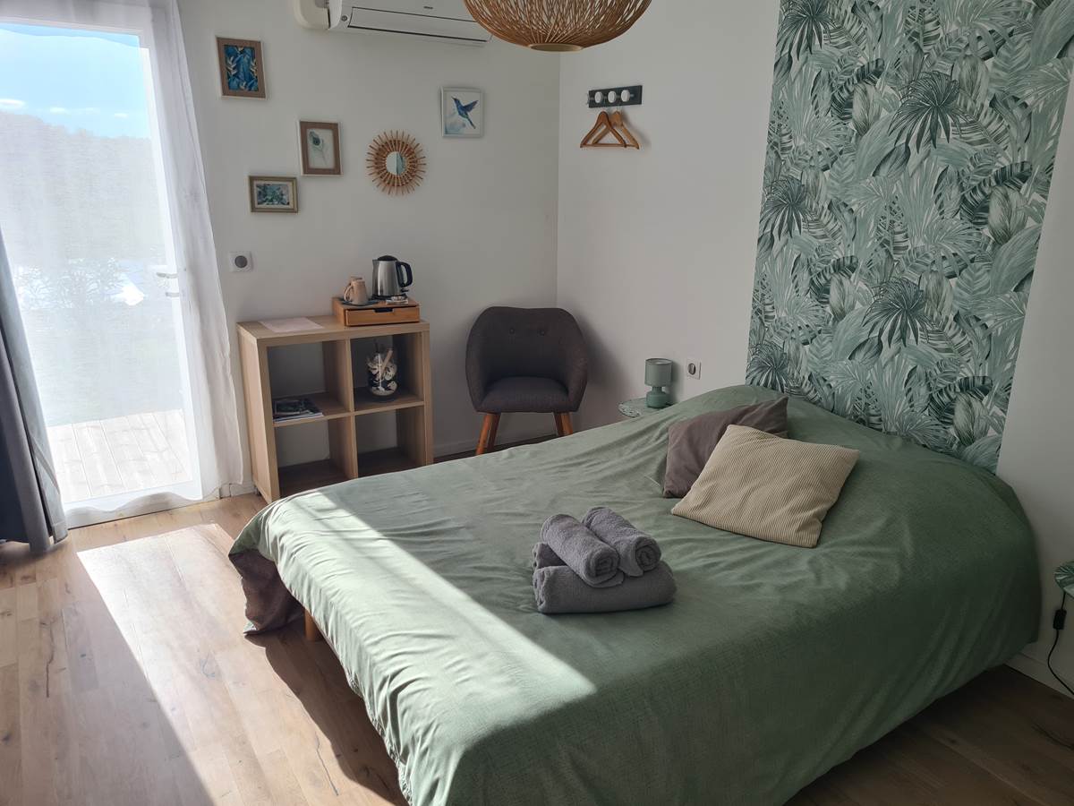 La chambre Feuillage vous accueille pour un séjour tout confort à Orgnac-l'Aven, au cœur de l'Ardèche méridionale.